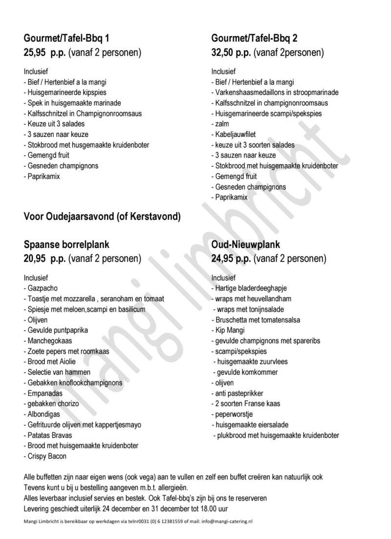 Onderstaande is uitsluitend nog te bestellen voor Sinterklaas en Oudejaarsavond!!! Kerst zit helaas helemaal vol!!!